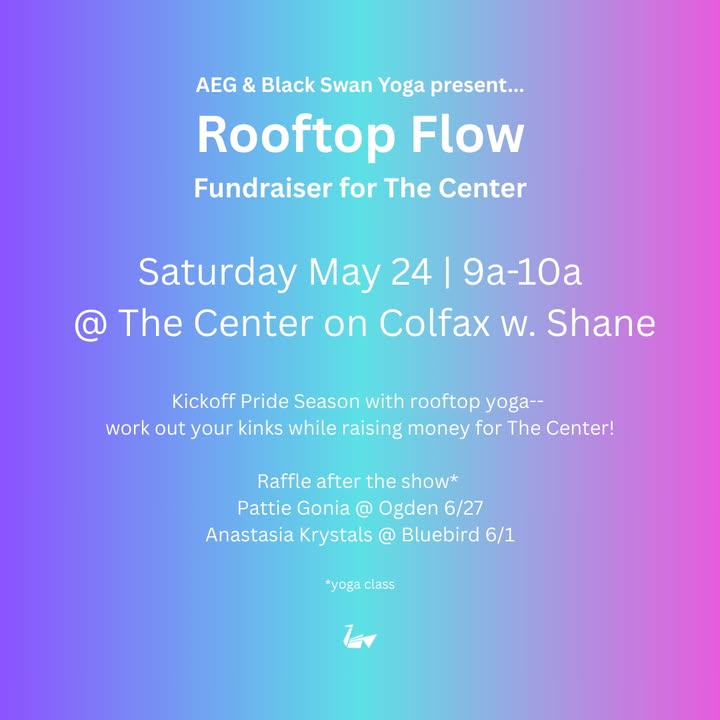 Denver residents can join a rooftop yoga event this Saturday, May 24, from 9 a.m. to 10 a.m. The event is hosted by AEG Presents Rocky Mountains and Black Swan Yoga at The Center on Colfax. All proceeds from the event will be donated to The Center on Colfax.